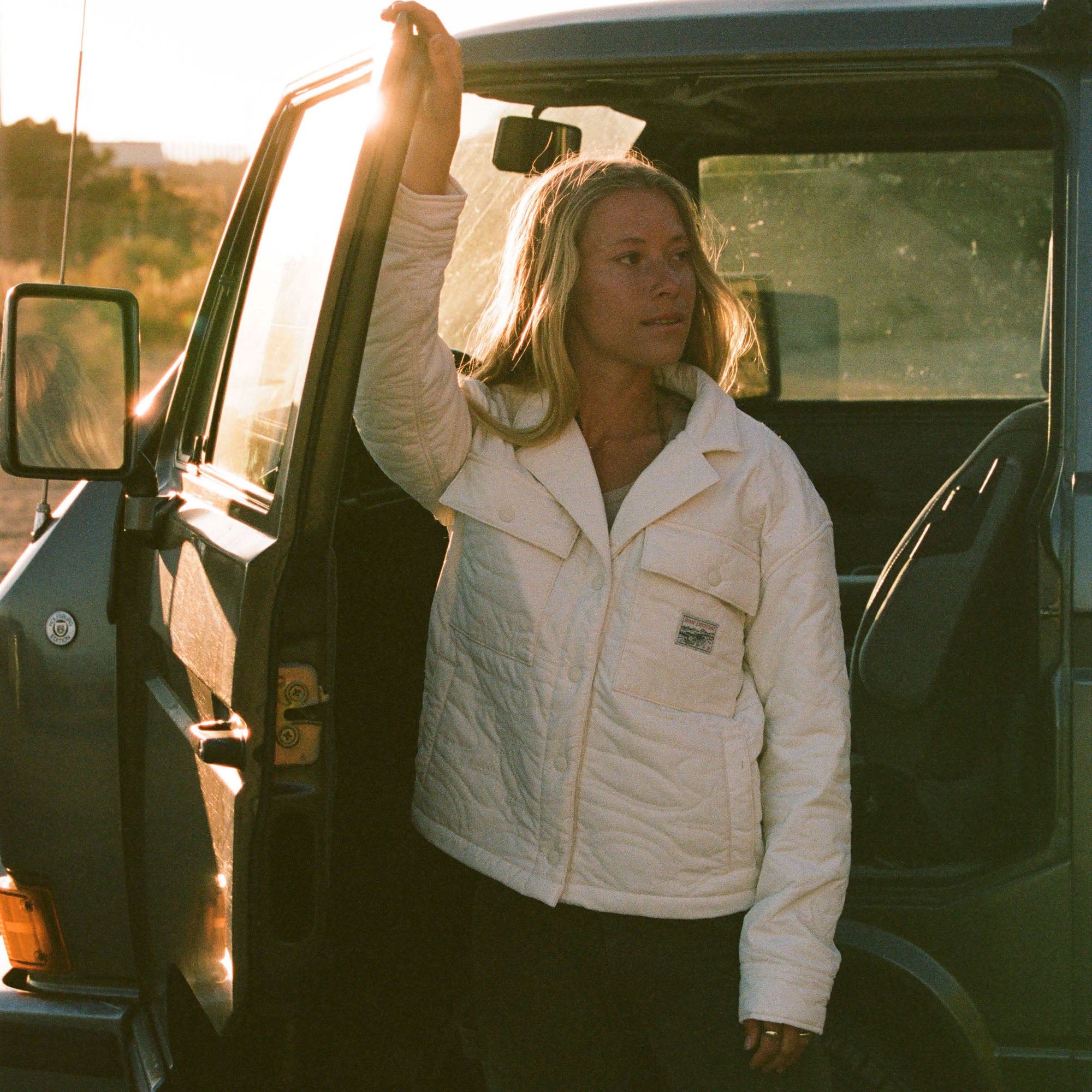 Our best selling Passport Jacket gets winterized this season, cut in 100% Nylon with light water resistance and quilted recycled seawool insulation. Smawarm® is made from recycled plastic bottles and upcycled pulverized Oyster Shells to create a sustainable down alternative that is warmer, anti-static and moisture wicking.