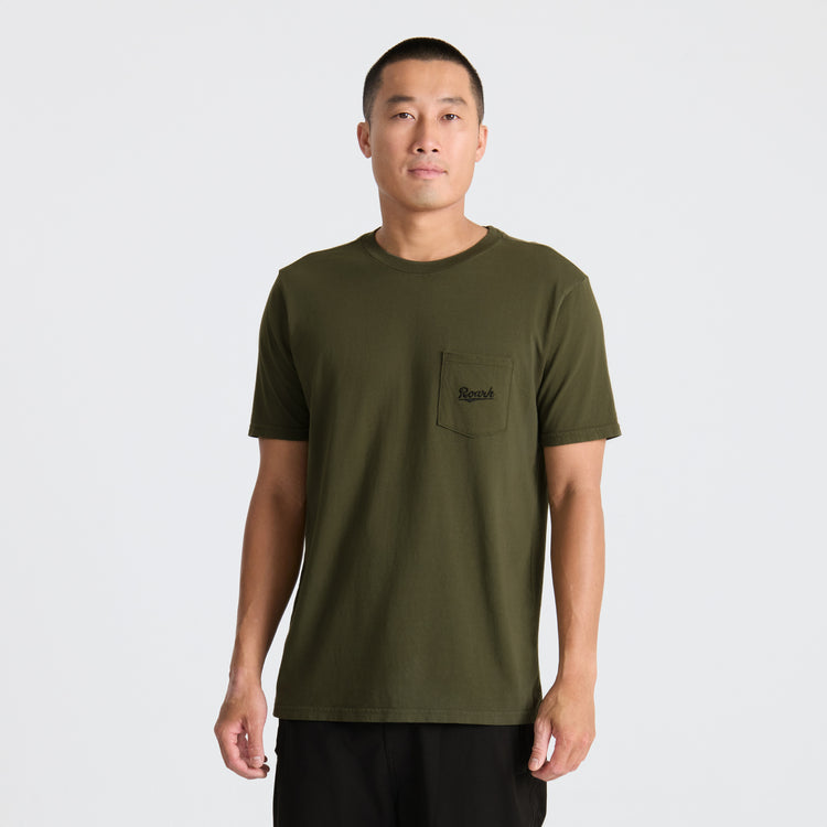 Timeless and versatile, the Roark Script Pocket Tee is your go-to essential for everyday wear. Durable and comfortable, this navy crew neck tee pairs well with anything. Add it to your rotation—where style meets comfort.